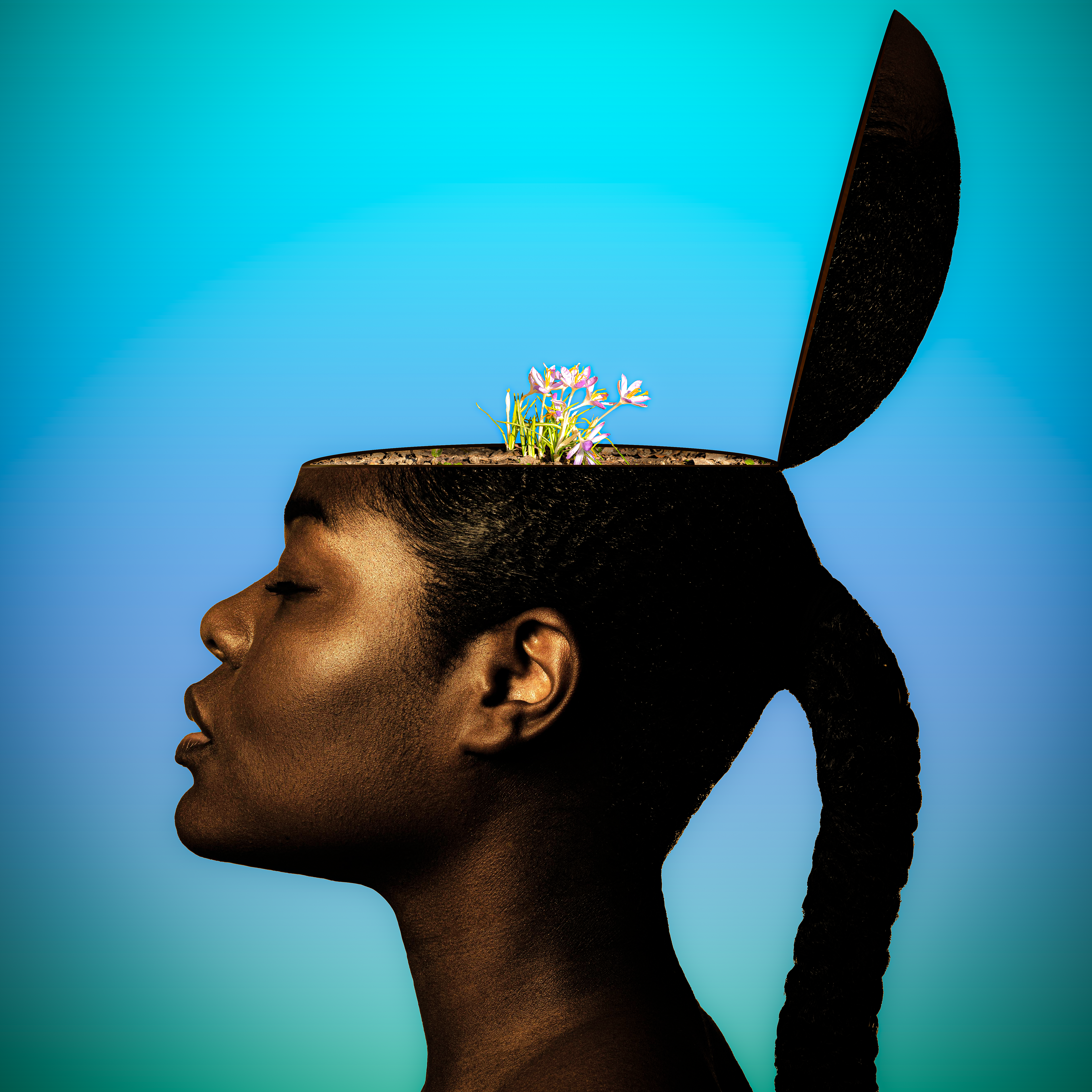 woman open head with flowers